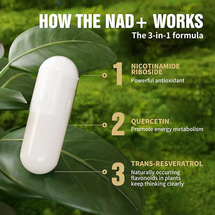 Our NAD+ Nicotinamide Riboside Capsules are formulated to support your body at the cellular level—naturally. This advanced supplement helps replenish NAD+, the essential molecule your cells need to produce energy, repair damage, and maintain youthful vitality. Whether you want to boost energy, support metabolism, enhance mental clarity, or promote overall wellness, this scientifically backed formula helps you feel recharged, focused, and vibrant every day.